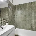 Az apartman fürdőszobája hajszárítóval, szárítóval és törölközőkkel felszerelt.